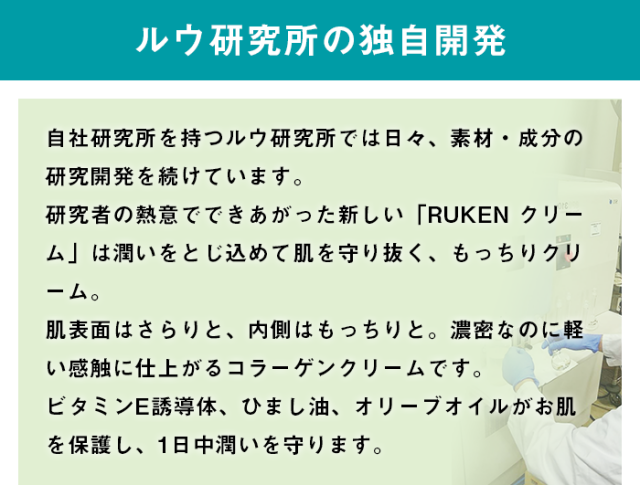| 成分 | 精製水、BG、プロパンジオール、グリセリン、トリ(カプリル酸/カプリン酸)グリセリル、ヒマシ油、オリーブ油、ステアリン酸、ステアリン酸ソルビタン、ポリソルベート-60、テトラヘキシルデカン酸アスコルビル、スクワラン、パルミチン酸レチノール、酢酸トコフェロール、加水分解コラーゲン、コメヌカコラーゲン、コメヌカエキス、ピーナッツ油、ラウリン酸ポリグリセリル-10、ジメチコン、カルボマー、フェノキシエタノール、ペンチレングリコール、水酸化K |